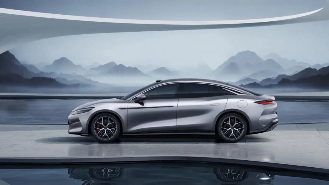 新上市的比亚迪汉L车身侧面巧妙运用了具有文化属性的书法笔锋元素,营造出简洁、纯粹的视觉效果
